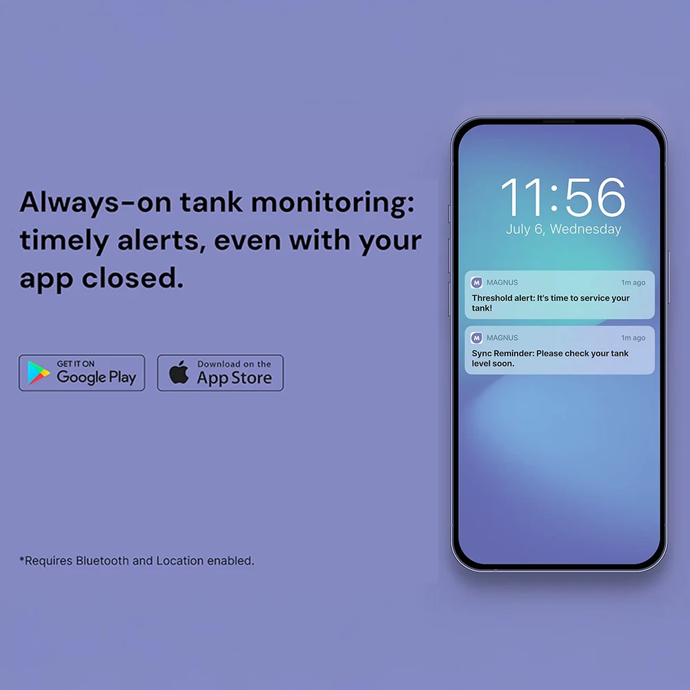 Custom alerts for low levels, leaks, or theft