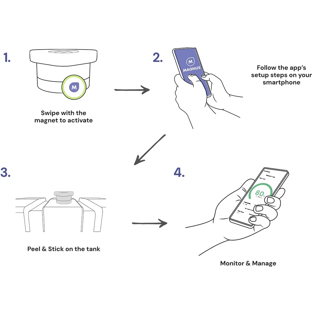 Mount the HAWKi on top of your plastic tank using the supplied adhesive pad, ensure it’s level, pair via Bluetooth, and start tracking your tank data instantly. For steel tanks or unusual fluids, contact us for fitting advice.
