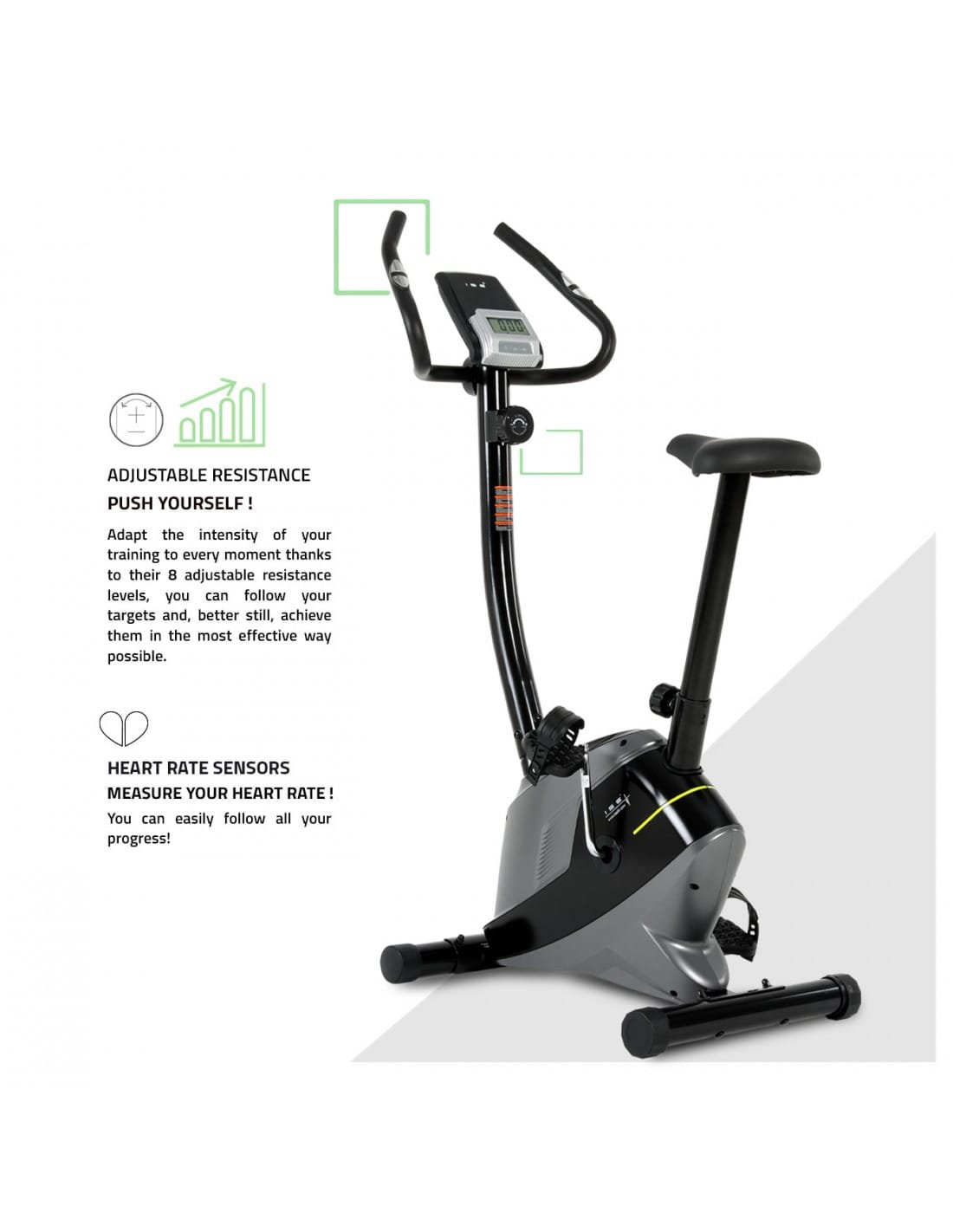 With a simple mechanical design, this bike avoids the complexity of electronics. Its steel frame ensures longevity and strength. The pedals come with non-slip surfaces and foot straps, ensuring your feet stay secure through sprints or more relaxed use.
