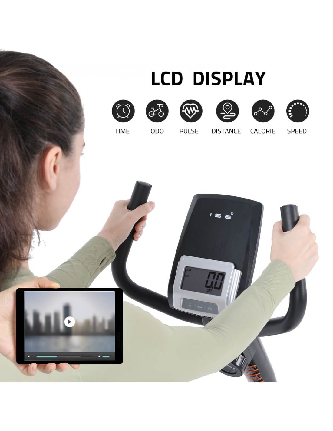 Equipped with an LCD console that tracks 7 key metrics—time, speed, distance, calories, odometer, pulse, and scan mode—you can keep tabs on your performance in real time. Built-in pulse sensors on the handlebars let you monitor your heart rate as you train.